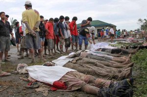Bodies of flash flood victims lie on the ground as villagers look for their missing relatives after Typhoon Bopha hit New Bataan in Compostela province, southern Philippines December 5, 2012. Bopha, the Philippines’ strongest typhoon this year, was headed towards tourist destinations on Wednesday after hitting a southern island, destroying homes, causing landslides and killing at least 82 people, but many more are reported dead and missing. REUTERS/Stringer(PHILIPPINES – Tags: DISASTER ENVIRONMENT TPX IMAGES OF THE DAY)