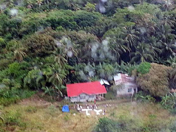 Aerial shot of a TY and Help written in an upland barangay in Loon town.