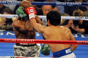 LAS VEGAS, NV – APRIL 12: Manny Pacquiao (R) and Timothy Bradley fight during their WBO world welterweight championship boxing match at the MGM Grand Garden Arena on April 12, 2014 in Las Vegas, Nevada. (Photo by David Becker/Getty Images)