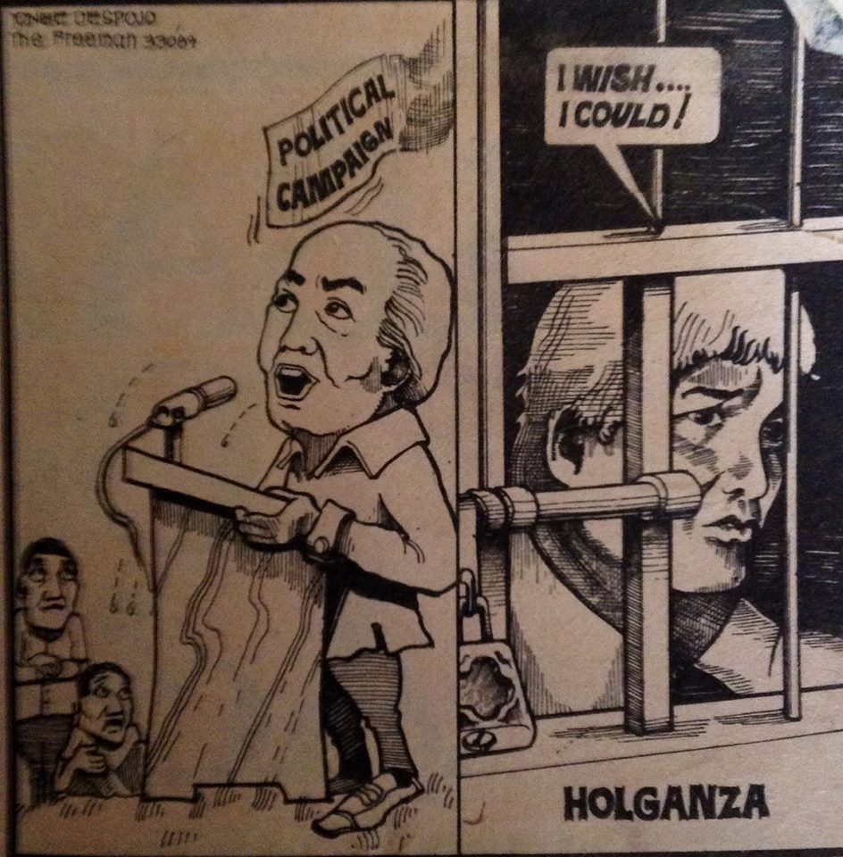 Campaigning from his cell. (courtesy of Rosemarie Holganza Borromeo)