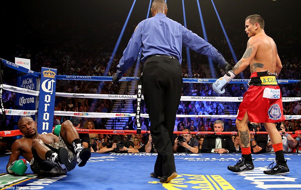 A looping right by Maidana which hit Mayweather in his left face badly hurt the American and he walked back to his corner as the bell rang with rubbery legs.