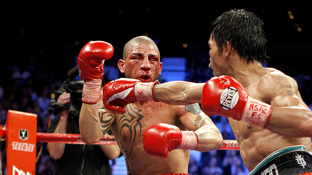 Manny is a lefty. His work-rate doesn’t allow his foes much time to think. He is fast and furious, he comes in from the weirdest of angles, and is known to take risks just to get his shots in.