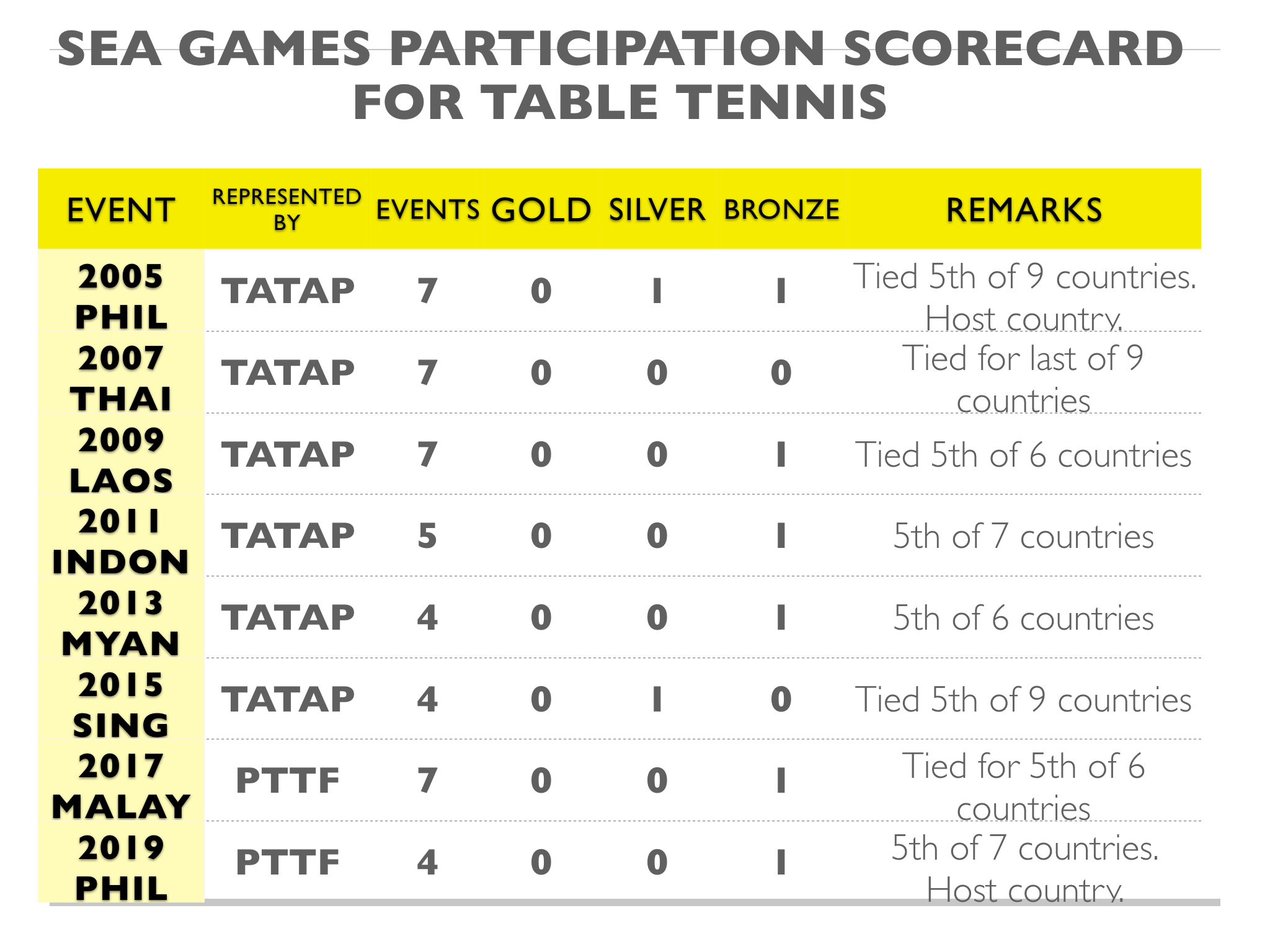 In Table Tennis, the Philippines was also mired in the cellar, with just 1 bronze to show out of 4 events. Table Tennis is supposed to be another sport where we Filipinos can excel in. It’s a pity that sports politics has kept the players divided and the field underdeveloped. (Please read: How Peping Annexed Philippine Table Tennis.)