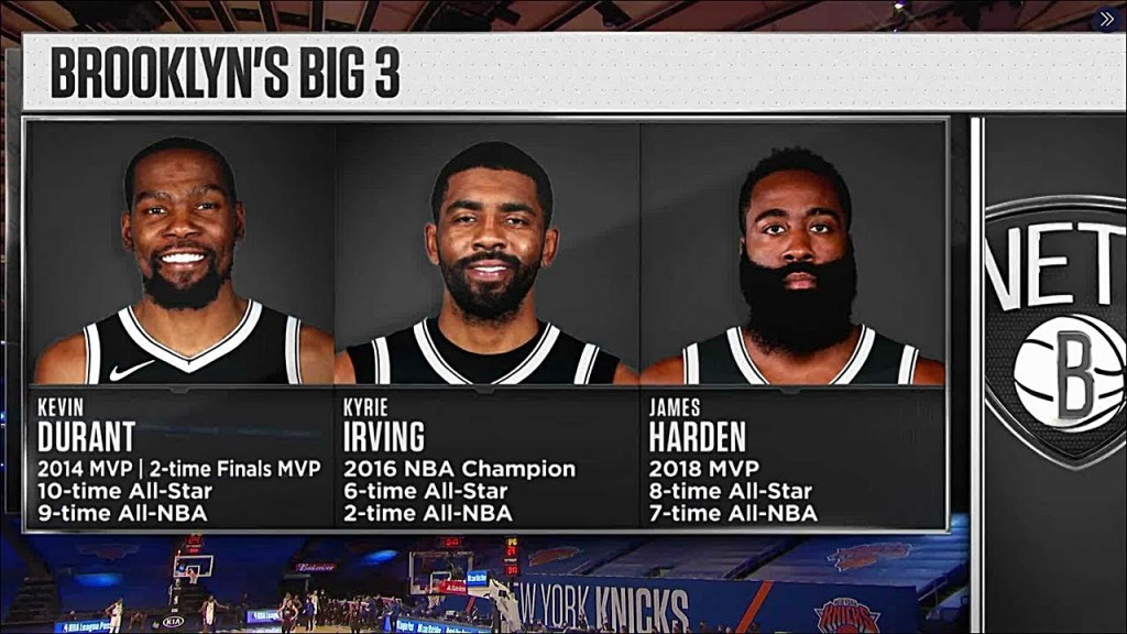 The best case scenario for the Nets right now would be for Kyrie to learn to accept the role as the third wheel, and James the second wheel. If both players embrace that, then the team has a better than good chance to make it as champions. The talent level of these 3 will make it the top trio in the league by far. If James and Kyrie accept their respective roles, no team will be able to handle the Nets, even as their defense may appear suspect at times. The good karma, borne out of the demonstrated unselfish giving and sharing, will bring this team the NBA Championship.