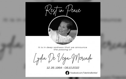 Diagnosed with stage 4 breast cancer in 2018, she underwent several procedures before finally succumbing this August 10, 2022 at the Makati Medical Center. She is survived by her husband, Paulo Mercado, and 2 children.