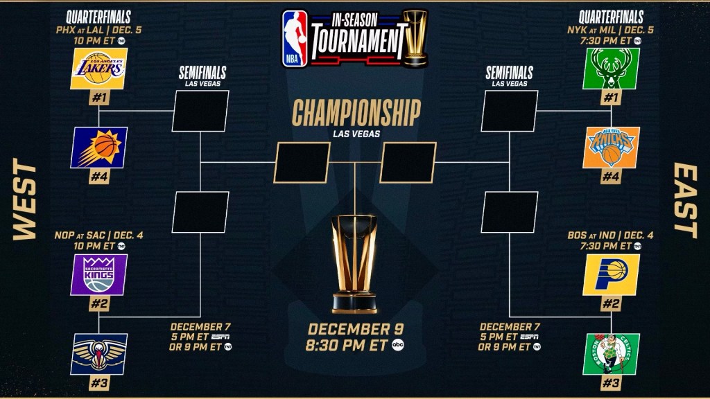 Expect sparks to fly with the quarterfinals this 4th and 5th of December. And keep your eyes and ears open, as the semis and the finals come in fast and furious on the 7th and the 9th in Las Vegas. This is it, folks, the NBA playoffs in a frenetic college-style no-nonsense knockout affair. Action will be hot and heavy, it will be wet and wild. It will be intense, it will be insane. It’s the In-season tournament. Go watch.
