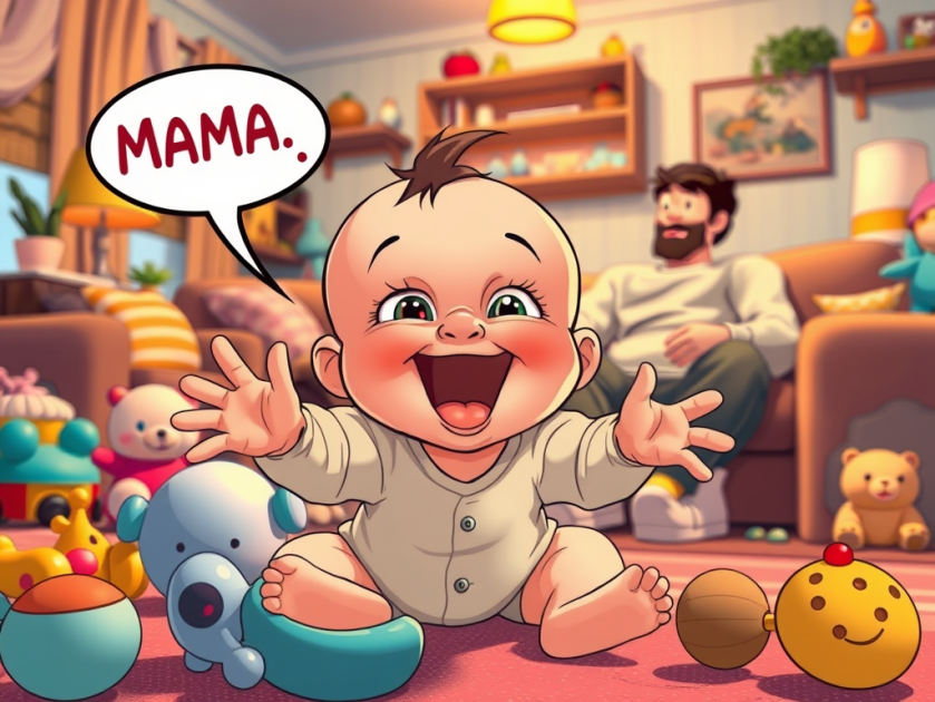 On only his 3rd month, the baby calls: “Mama”. Wow! At only 3 months, he utters his first word. Everyone is stunned. We have a gifted child here!