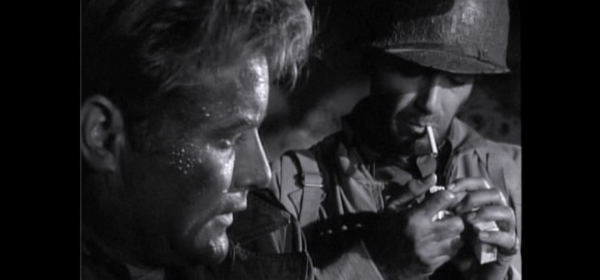 Lt. Hanley runs to the aid of a badly wounded Sgt. Saunders, hung up in enemy barbed wire.…